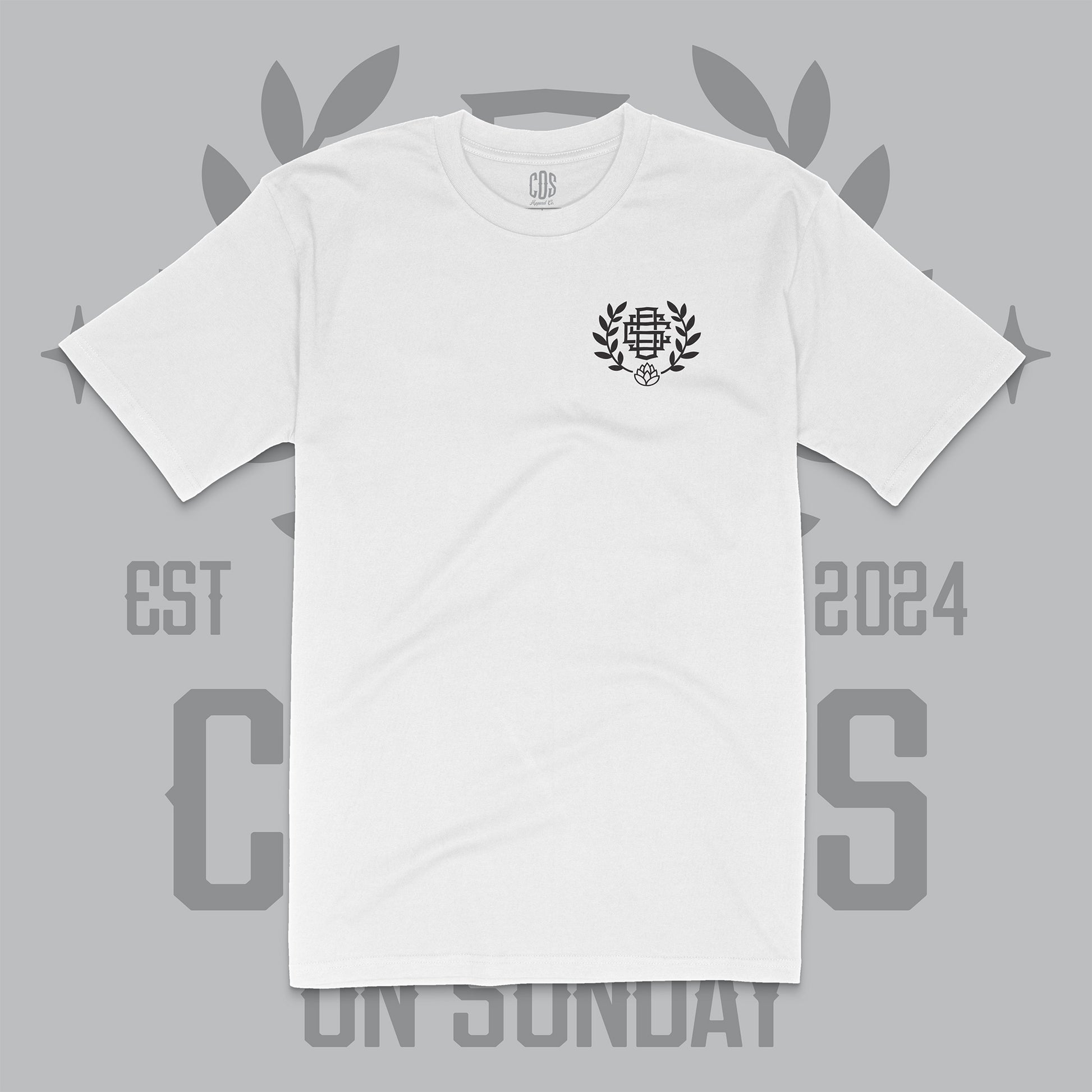 Clean, crisp, and made to stand out quietly. The CDS Club Tee in white carries the same crest design as the original — CDS monogram, laurel leaves, and subtle hop detail — now flipped in black ink on a fresh white canvas.