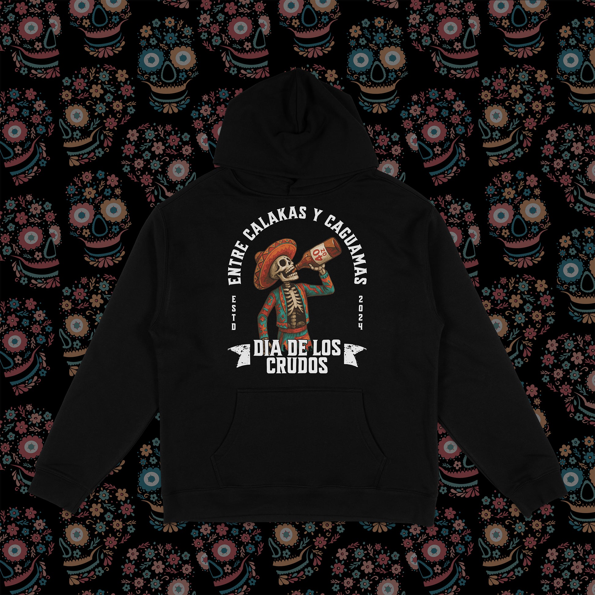 The official men’s tee of the Día de los Crudos drop 💀🍻. Featuring a bold skeleton in sombrero drinking a caguama, this limited-edition design celebrates both Día de los Muertos tradition and Sunday crudo humor. Printed on premium cotton in deep black, it’s made for the weekend warriors and the Crudo Crew alike.