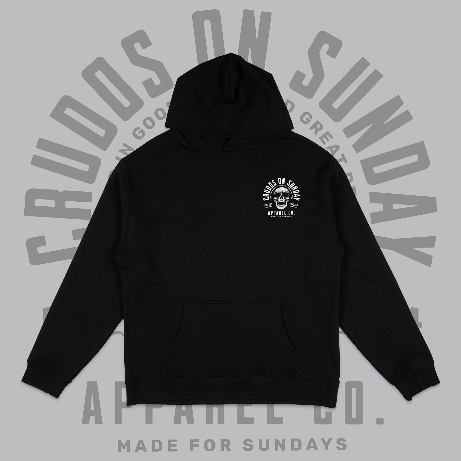 Legends aren’t made on weekdays—they’re made on Sundays. The Domingo Legends Hoodie in black is for the crew that turns weekends into stories. With a bold white Crudos on Sunday graphic on heavyweight 12 oz 60/40 fleece, it’s built for late nights, early mornings, and everything in between. No drawstrings, no distractions—just a hoodie that hits as hard as the memories you make.