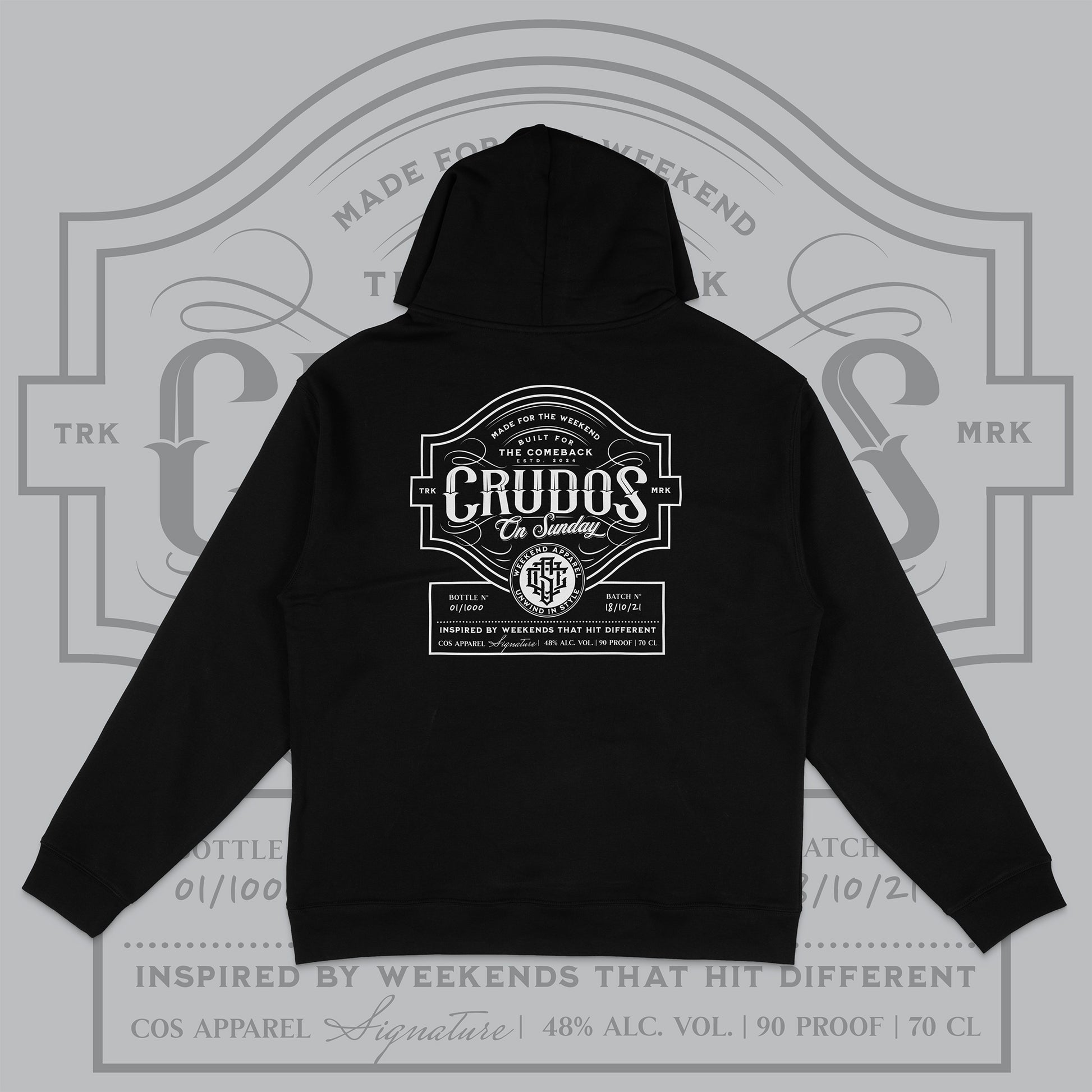 Sunday style, upgraded. The Domingo Reserve Hoodie in black brings a touch of refinement to the Crudos on Sunday lineup with clean white detailing that stands out without shouting. Made from heavyweight 12 oz 60/40 fleece, it’s the perfect blend of comfort and structure. No drawstrings for a sleek look—just a hoodie that feels a little more premium, a little more reserved.